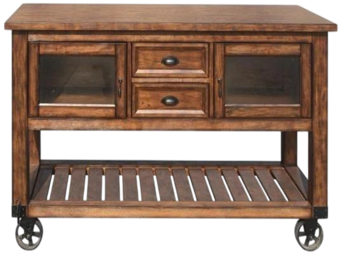 The Kadri kitchen cart with durable construction of wood and metal in a unique distress chestnut finish will become a stylish and function centerpiece of your home. The kitchen cart rests on casters, allowing you to move it easily. The storage space includes cabinets, drawers and open shelf.Read More