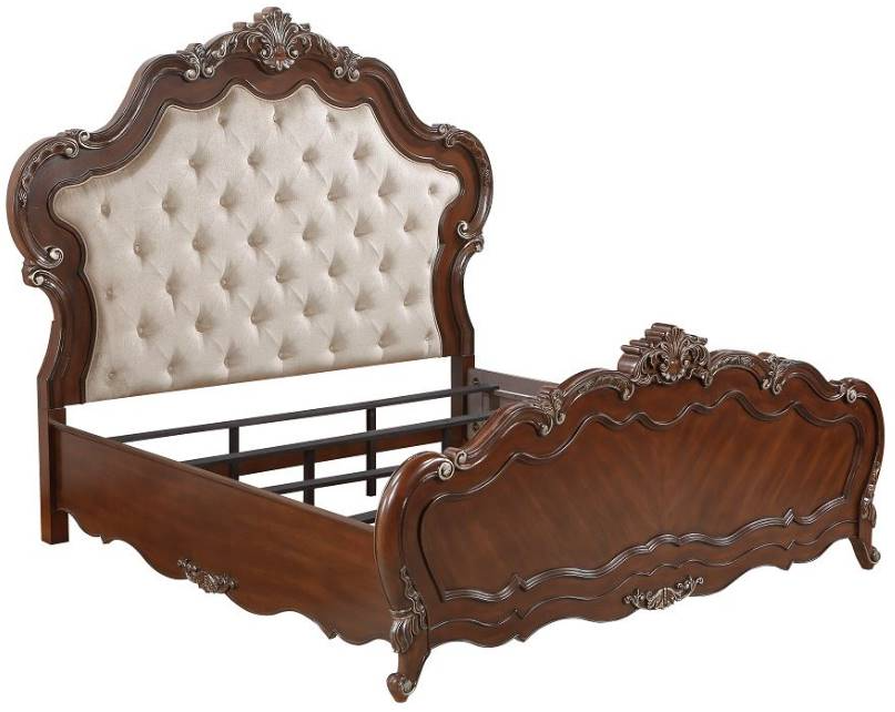 The Latisha bed is a stunning traditional timeless piece. It is designed with exquisite shell and scroll details that evoke a sense of classic elegance. Finished in rich antique oak with golden highlights, this bed features a padded button-tufted fabric headboard and scalloped edges.Read More