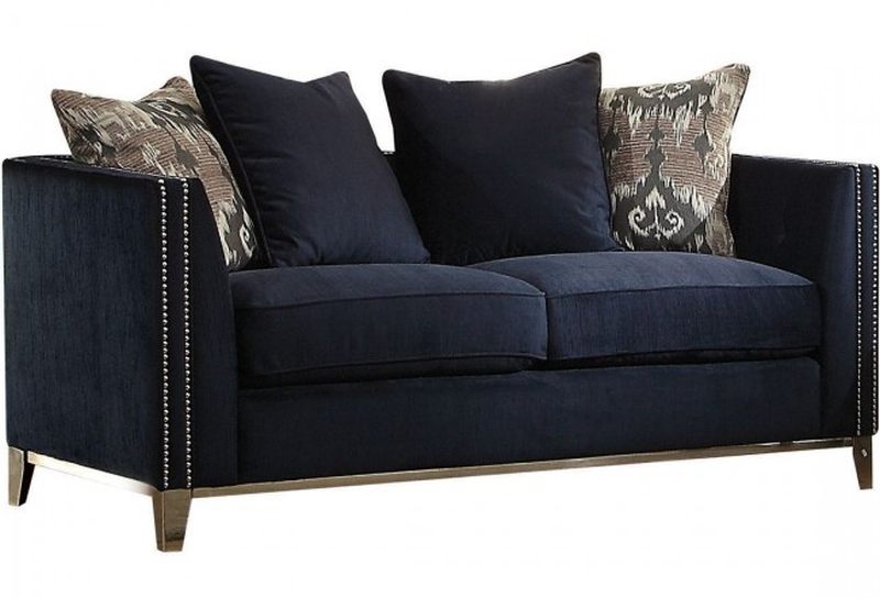 The Phaedra sofa is an ideal choice for any living room. This blue upholstered sofa features decorative Nailhead trim, pocket coil seating, tight back and loose seat cushions. Five duck feather filled pillows are included for better and comfortable back support.Read More