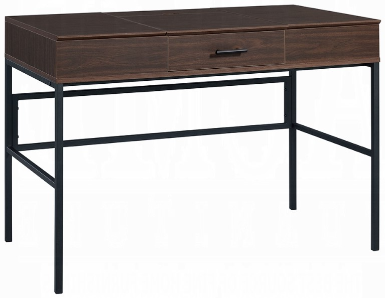 The beautiful contrast between warm wooden tone with cold metal elements delivers a bold industrial design. The writing desk has a wooden top for natural texture, softening the hard look of dark metal frame.Read More
