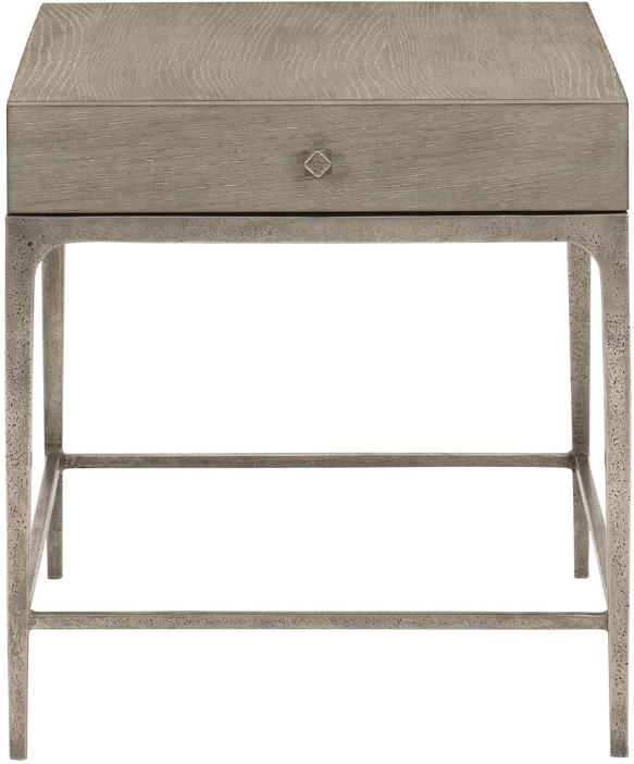 With the Linea end table, the drama lies in the contrast between the unique finishes and materials. Wire-brushed oak veneers in a Cerused Greige finish add subtle textures while leaving a white hang-up in the grain. The rustic look partners elegantly with the sleek cast aluminum base in a complex Textured Graphite finish.Read More
