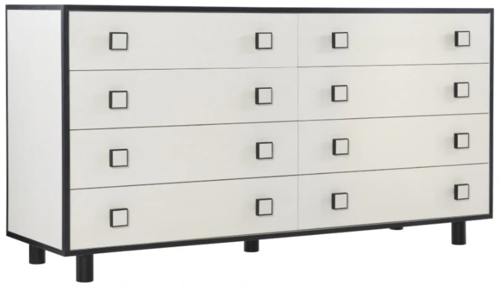 Silhouette is defined by bold contrasts, clean lines and a hint of Hollywood Regency glamour. With a chic palette of black and white, the Silhouette dresser brings a dramatic edge to a minimalist form. Finished in Eggshell, the case features eight drawers accented by square wood pulls in a two-tone finish.Read More