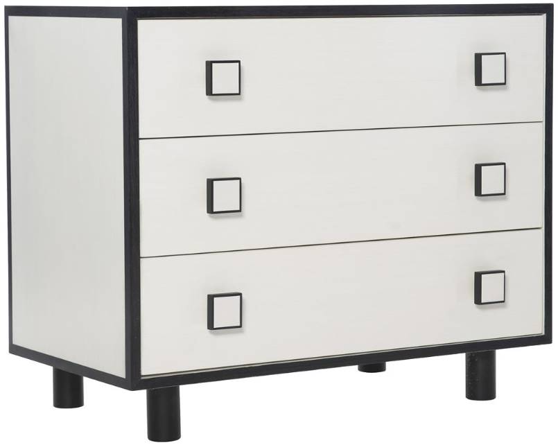 Silhouette is defined by bold contrasts, clean lines and a hint of Hollywood Regency glamour. With a chic palette of black and white, the Silhouette nightstand brings a dramatic edge to a minimalist form. Finished in Eggshell, the case features three drawers accented by square wood pulls in a two-tone finish.Read More