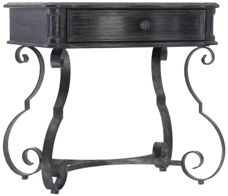 Inspired by traditional Italian styling, this unique one-drawer nightstand features a scrolled metal base in a textured carbone finish. The elegant serpentine drawer box recalls classic renaissance style, while its soft ember finish perfectly complements the blackened metal scrollwork of the base.Read More