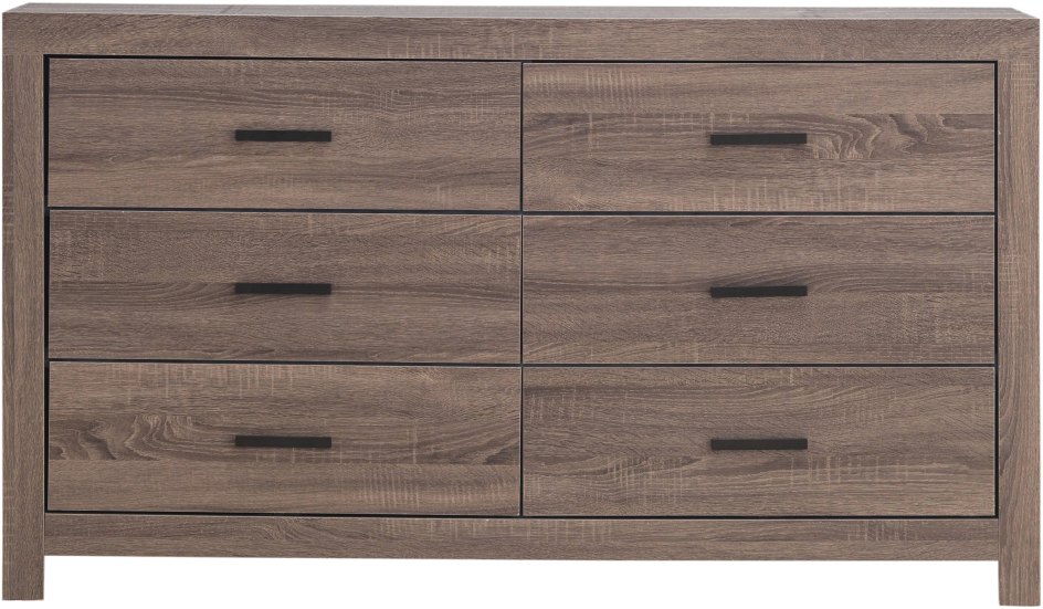 Bold and contemporary, this wooden dresser freshens up a bedroom with cool, modern appeal. This piece is crafted with a 3D paper veneer for added quality and easy maintenance. Dark bronze handles top each drawer to add a classic element to its modern look. The deep storage drawers easily accommodate a wide variety of wardrobe essentials. This beautiful dresser is available in multiple finishes to easily blend with any palette.