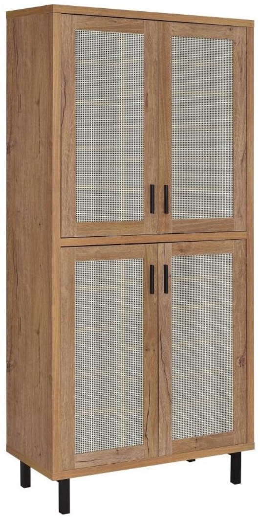 This tall shoe cabinet combines modern industrial design with practical functionality, featuring a natural oak finish and four metal mesh-framed doors for ventilation. Designed to organize your footwear collection, it includes 14 adjustable shelves, accommodating a variety of shoe sizes and styles.Read More
