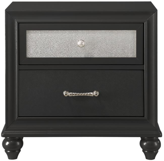 The Crown Mark Lila Black Nightstand blends contemporary style with functional design. Featuring a sleek black finish and clean lines, it includes a spacious drawer, perfect for storing essentials and adding a touch of modern elegance to any bedroom.Read More