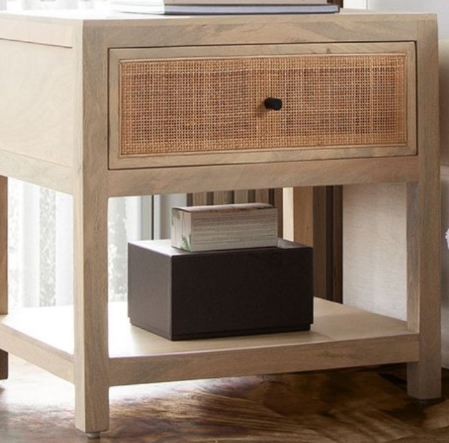 The Sadler 1-Drawer Mango Wood Nightstand in natural finish with cane drawer front by Diamond Sofa will add character and charm to any room's décor. Interior drawer storage and under shelf storage provide function.Read More