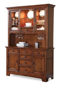 Taking its inspiration from rural American communities of the 1900s, River Valley adds a rustic simplicity to your favorite dining area. The hutch features canister lights controlled by a touch-hinge dimmer lighting system that allows you to switch between three brightness levels by simply touching the hinge. Rustic, textured drawer pulls and storage solutions that can be customized to fit your needs make this a perfect addition to the River Valley buffet.