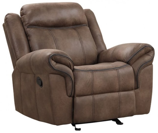 The Furniture of America® Agata Brown Manual Glider Recliner offers both comfort and relaxation with its smooth gliding motion. Upholstered in rich brown leatherette, it provides a cozy spot for unwinding after a long day. Its classic design complements various home styles, making it a perfect addition to any living space.Read More