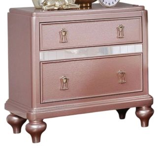 Resting atop elegant bun feet, this glamorous Nightstand brings a touch of stylish appeal that instantly brightens any space! Mirrored accent panels bring extra glitz to the design and make this a stunning piece to admire!Read More
