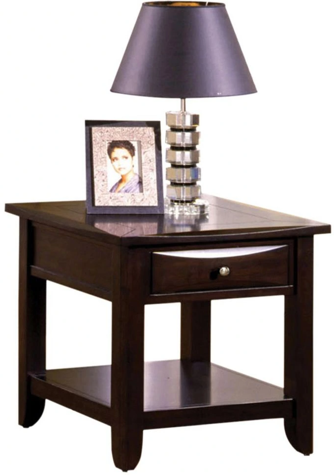 Add appeal to your living area with these contemporary style espresso accent tables. Each drawer has ample storage and a lower open shelf for great storage or display.