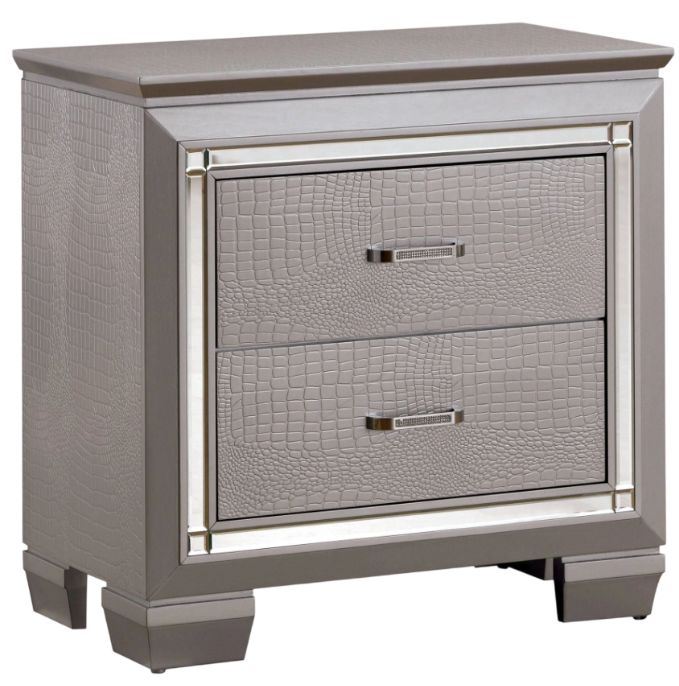 The Bellanova silver nightstand by Furniture of America features a sleek silver finish with paneled detailing. Its spacious drawers provide convenient bedside storage for essentials, while sturdy construction ensures reliable support and everyday functionality.Read More