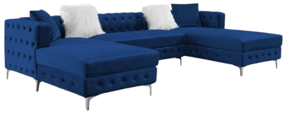 Decorator-inspired flannelette fabric, high arms of regal stature and deep tufted frames combine for a seating experience that is forever inviting. The classic tuxedo design flourishes among more modern details such as the steel legs and chaise on both left and right side of the sectional.Read More