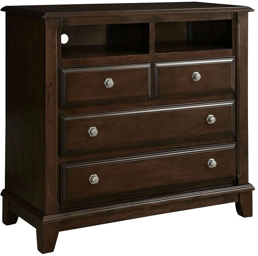 With smooth carved panels, this media chest will add a chic upgrade to your bedroom décor. A dark bold finish sets off the stylish design of the contrasting metal drawer pull handles.Read More