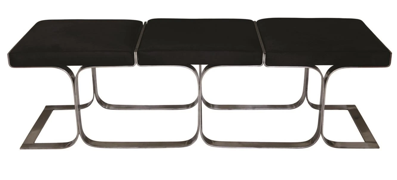 The Airline Bench is reminiscent of innovative seating designed for public spaces in the mid twentieth century. The cushions, available in five Brazilian grain leather color choices as well as a black hair-on cowhide option, attach using the Allen screws and wrench provided. The stainless steel base rests on nylon glides.Read More