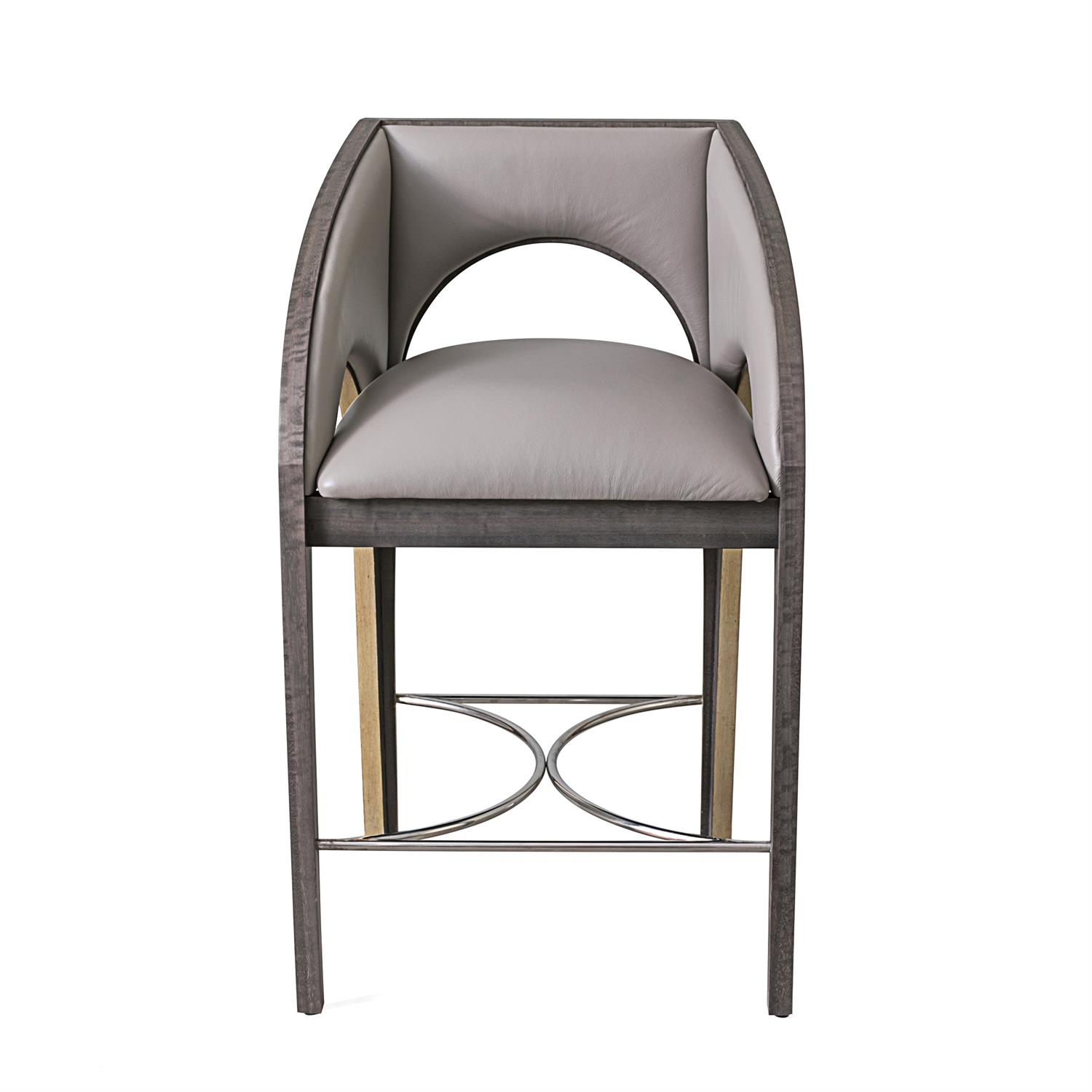 Our Arches Counter Stool is covered in luxurious leather with a dyed eucalyptus veneer frame. The cool grey tones are perfectly juxtaposed by the gold leaf accents on the base and the steel stretcher.Read More