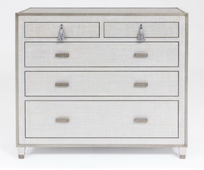 The Argento collection is inspired by finely textured, intricate Florentine silverwork, mixing soft shine and modern silhouettes. Each piece mixes silvered raffia coverings with pewter metal trim. Mixing function and aesthetics, this chest is perfect for storage and top two drawers of this are lined. Generous but not oversized, this bit of modern gilding is tailored but also opulent.Read More