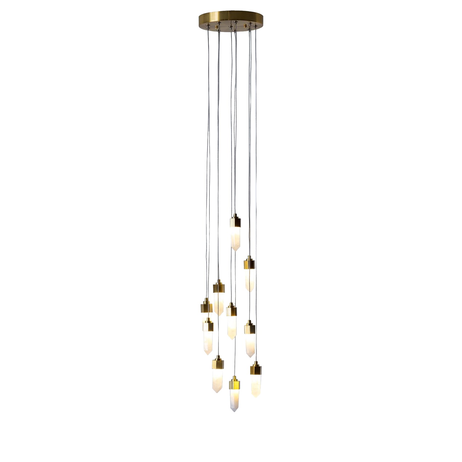 The Leo Chandelier-20 Drop Rectangle is made from gorgeous hand polished natural quartz crystal paired with soft satin brass, the Leo Collection turns any space into a work of art.Read More