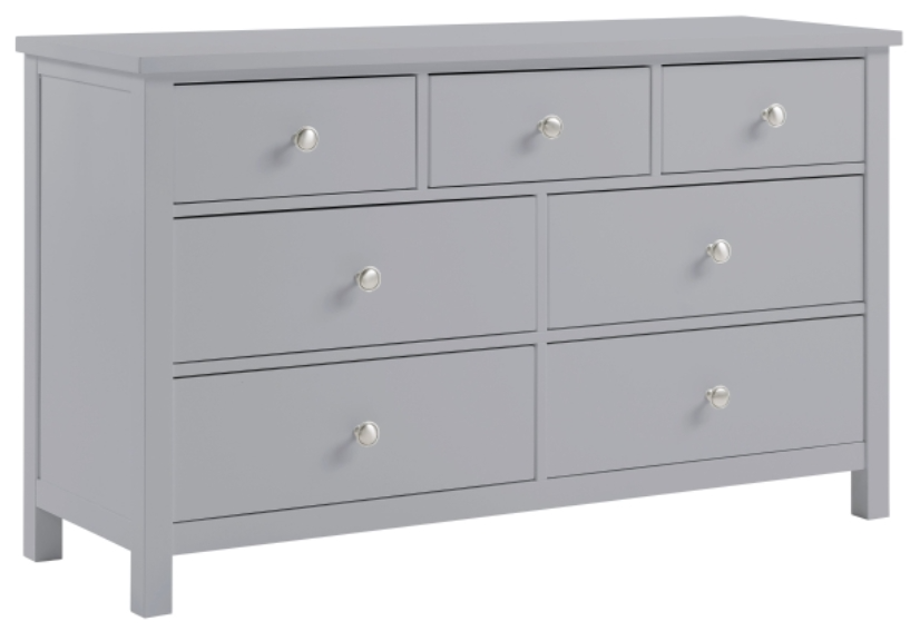 Organize your bedroom in style with this stunning gray dresser, meticulously crafted from a premium blend of pine veneer, wood, and engineered wood. Its versatile gray finish and clean-lined silhouette offer a modern aesthetic that effortlessly elevates any decor. Featuring seven spacious drawers with durable dovetail construction, this piece provides ample storage for your entire wardrobe.Read More