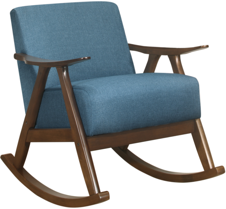 The frame of the Waithe Collection recalls a time when simplicity of profile was the height of style. The streamlined design of the rocking chair features subtly sloped wood arms, legs and rails that are finished in dark walnut, serving to highlight the blue seat covering.Read More