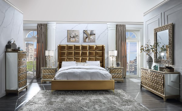 Elevate your bedroom with this 5-Piece Bedroom Set from Homey Design. The set itself provides compliments to other furniture surrounding it. Make a bold statement by incorporating this stunning set into your home.Read More