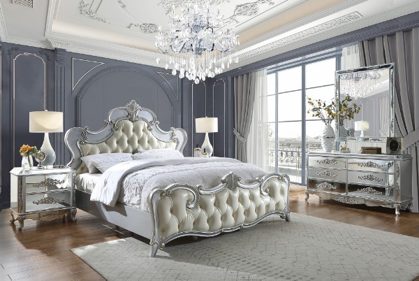 5pc Set Includes: 1 Bed, 2 Nightstands, 1 Dresser, 1 Mirror.