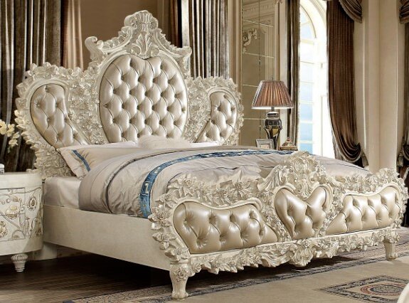 Complete your bedroom idea with this bed from Homey Design. Shown in a plantation cove white finish, this bed features a wooden frame and leather upholstery. This piece will definitely add style to your bedroom.Read More