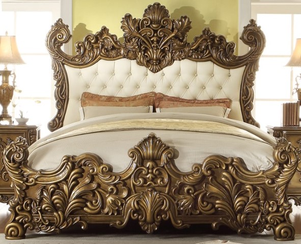 Complete your bedroom idea with this bed from Homey Design. Shown in a met ant gold and perfect brown finish, this bed features a wooden frame and leather upholstery. This piece will definitely add style to your bedroom.Read More