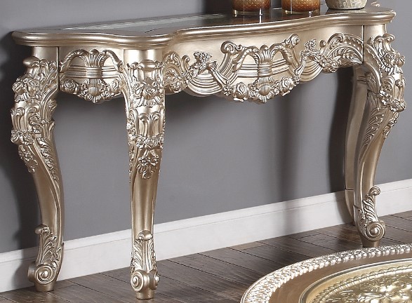 Accent your living area with this Console Table. Its champagne finish on the frame gives this table an alluring appeal. With its beautiful design, this table is sure to make a statement in your living room.Read More