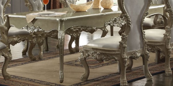 Dine-in style with this Dining Table. This wooden dining table features a champagne gold finish on the tabletop and base. Make a bold statement by incorporating this furniture into your home.Read More