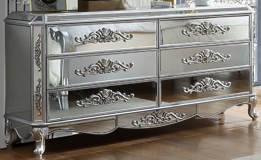 Elevate your bedroom with this Dresser from Homey Design. The item itself provides compliments to other furniture surrounding it. Make a bold statement by incorporating this stunning furniture into your home.Read More