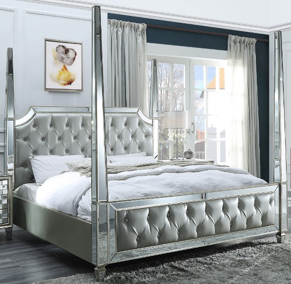 Complete your bedroom idea with this bed from Homey Design. Shown in a mirror finish, this bed features a wooden frame and leather upholstery. This piece will definitely add style to your bedroom.Read More