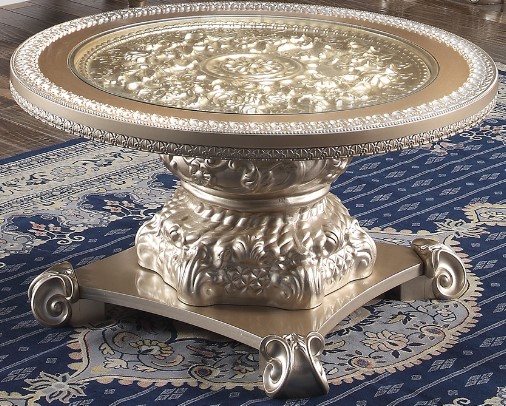 Accent your living area with this Coffee Table. Its champagne finish on the frame gives this table an alluring appeal. With its beautiful design, this table is sure to make a statement in your living room.Read More