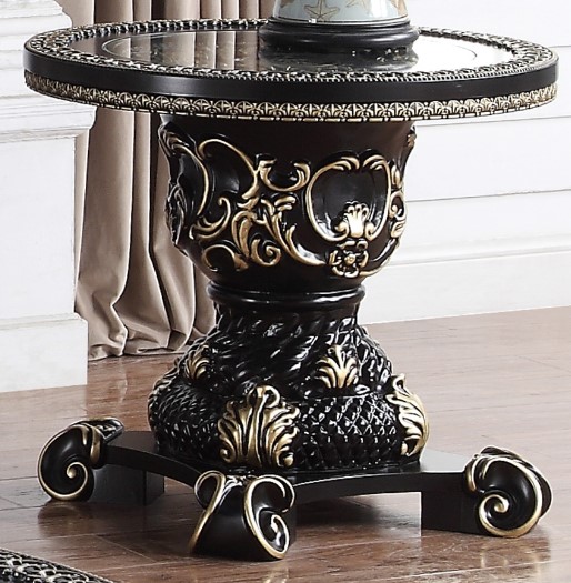 Accent your living area with this End Table. Its antique gold and ebony black finish on the frame gives this table an alluring appeal. With its beautiful design, this table is sure to make a statement in your living room.Read More