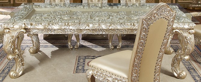 Dine-in style with this Dining Table. This wooden dining table features a glass finish on the tabletop and a belle silver finish on the base. Make a bold statement by incorporating this furniture into your home.Read More
