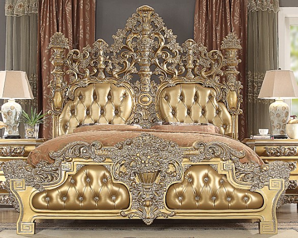 Complete your bedroom idea with this bed from Homey Design. Shown in a metallic bright gold finish, this bed features a wooden frame and leather upholstery. This piece will definitely add style to your bedroom.Read More