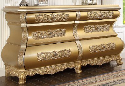 Elevate your bedroom with this Dresser from Homey Design. The item itself provides compliments to other furniture surrounding it. Make a bold statement by incorporating this stunning furniture into your home.Read More
