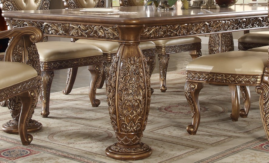 Dine-in style with this Dining Table. This wooden dining table features a met ant gold and a perfect brown finish on the tabletop and base. Make a bold statement by incorporating this furniture into your home.Read More