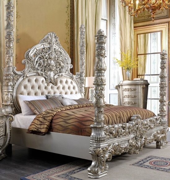 Complete your bedroom idea with this bed from Homey Design. Shown in a silver finish, this bed features a wooden frame and leather upholstery. This piece will definitely add style to your bedroom.Read More