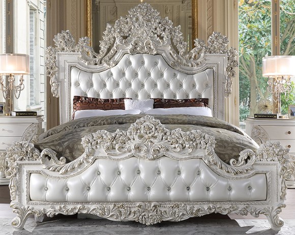 Complete your bedroom idea with this bed from Homey Design. Shown in a silver finish, this bed features a wooden frame and leather upholstery. This piece will definitely add style to your bedroom.Read More