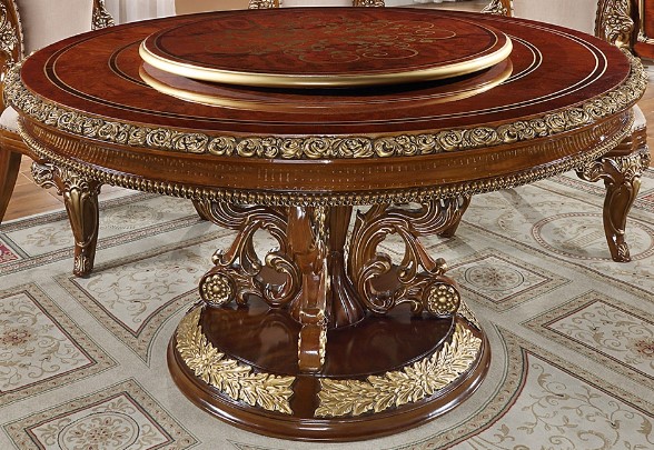 Accent your dining area with this Round Dining Table. Its burl and metallic antique gold finish give this table an alluring appeal. With its beautiful design, this table is sure to make a statement in your dining room.Read More