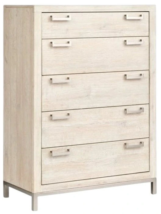 The Magnussen Home® Addison Lane white chest offers five spacious drawers in a clean white finish with brushed nickel hardware. Designed with wire management and a sleek metal base, it blends timeless style with modern function. Ideal for organized bedroom storage with a refined, sophisticated presence.Read More