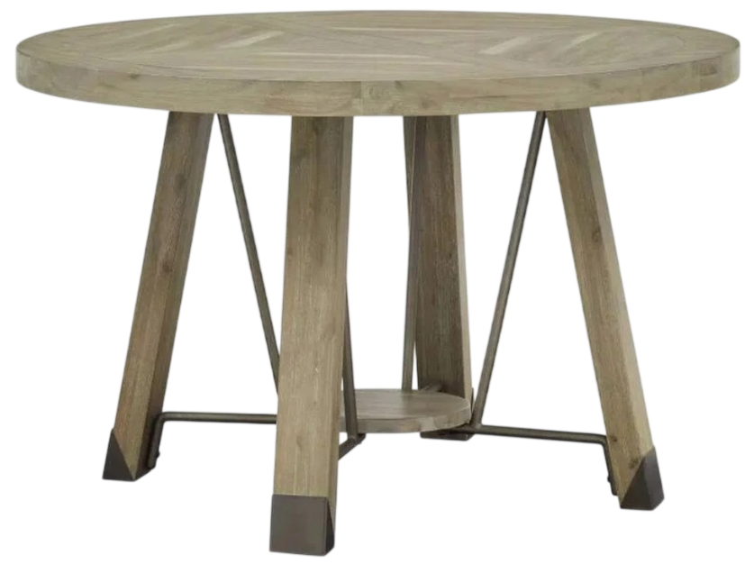 The Magnussen Home® Ainsley Dining Table features an acacia veneer and MDF top, a wood shelf with metal bracing, and metal caps on the feet. Create an uplifting setting in soothing natural colors and textures for memorable meals with the Ainsley Collection.Read More