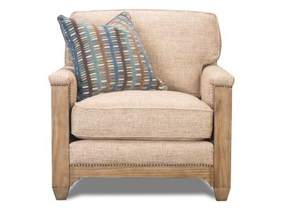 The Magnussen Home® Anderson Chair features plush upholstery, a decorative pillow that compliments the fabric, and sturdy construction. Nail head accent trim punctuates the look and offsets bottom upholstered rail and arm where the neutral cover and wood meet.Read More