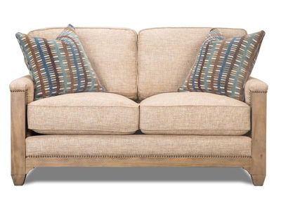 The Magnussen Home® Anderson Loveseat features plush upholstery, 2 decorative pillows that compliment the fabric, and sturdy construction. Nail head accent trim punctuates the look and offsets bottom upholstered rail and arm where the neutral cover and wood meet.Read More