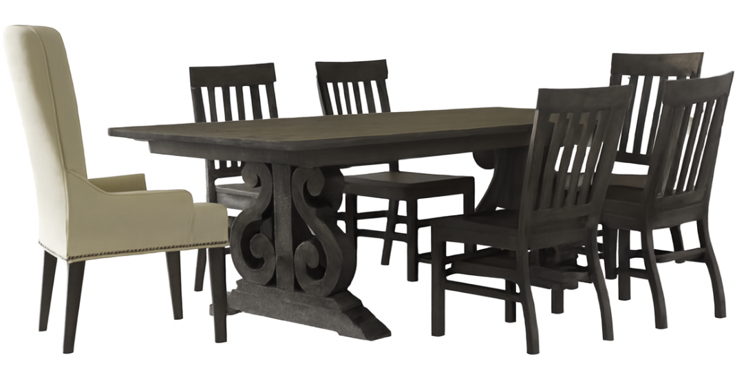 Perfectly proportioned to accommodate sprawling school crafts, fits of amateur bread baking or the usual holiday assemblage, our classically inspired Bellamy group maintains its pristine demeanor no matter what the task. Piled high with projects as it does all on its own, this group features pine solids and matte black with pewter highlights.Read More