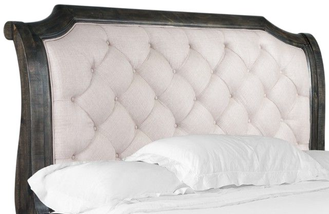 The Bellamy upholstered sleigh headboard blends plush tufted upholstery with a gently curved sleigh silhouette. Its elegant presence adds refined comfort and charm to any bedroom. Finished in a rich peppercorn tone, it offers both sophistication and cozy support, perfect for relaxing evenings or elevated bedroom aesthetics.Read More