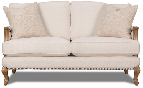 Timeless French styling and design elements give Everly enduring appeal. From the slightly arched camel back to the exposed wood on arms and cabriole legs, every detail is spot-on. A weathered wood finish features dusty wax hang-up and is offset by classic nail head trim along the base and arms. The reversible loose cushion seats and backs get a fresh neutral fabric and pair crisply with subdued neutral accent pillows for a clean take on tradition.