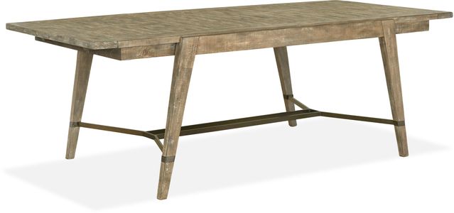 Magnussen® Home Bluff Heights Rectangular Dining Table with metal stretcher and weathered nutmeg wood finishRead More